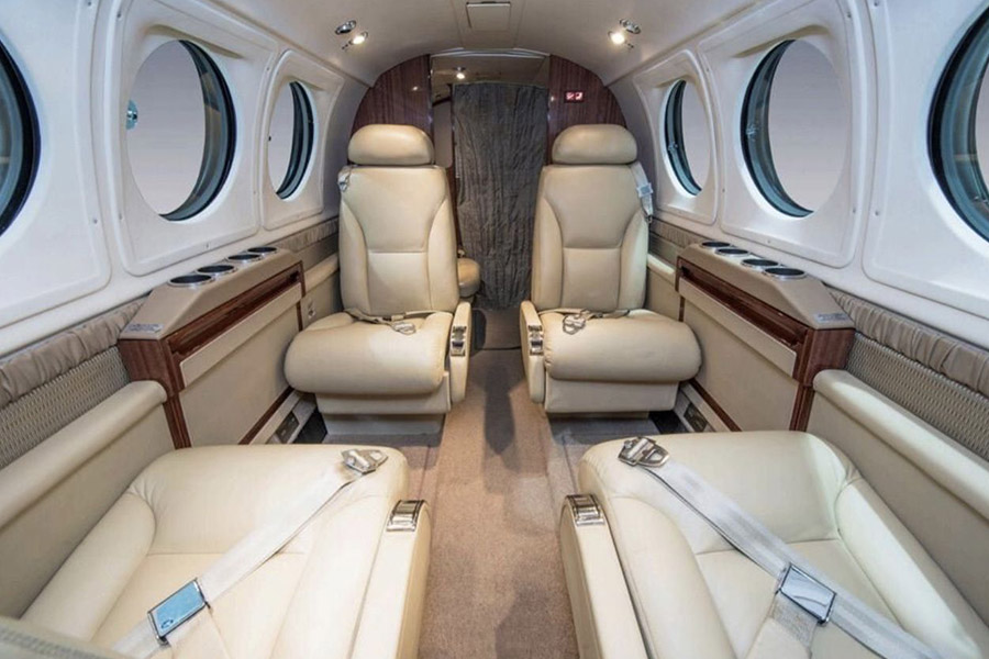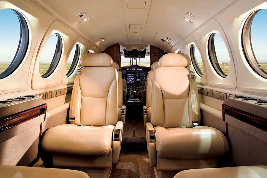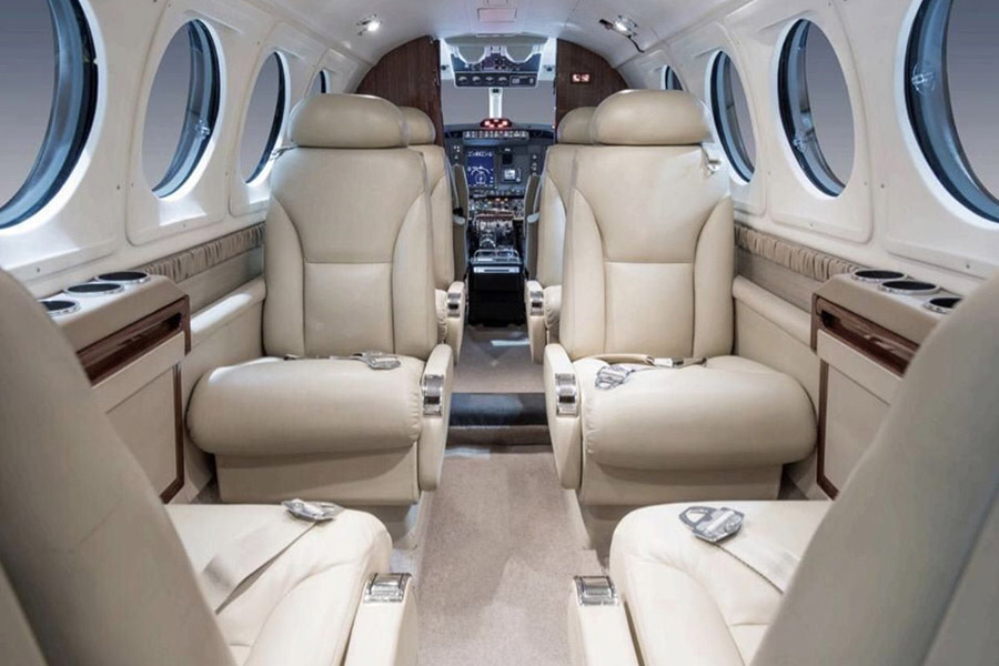 If you need to reach small and isolated airfields which are inaccessible to other, particularly larger, aircraft, the King Air 200 is a great option. Seating 6 passengers, the 200 is perfect for short-haul flights, business trips or business meetings, as it can bring you as close as possible to your destination. This turbo propeller aircraft offers fantastic value for money and the cabin's Club 4 seating arrangement guarantees your comfort. Over the years since the King Air 200's launch in 1969 a number of upgraded versions have been produced, most recently the B200GT and B200CGT, which offer performance-enhancing modifications, improving range, speed and cabin comfort.