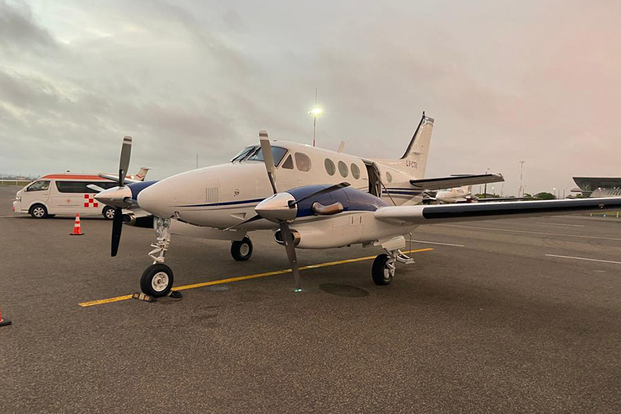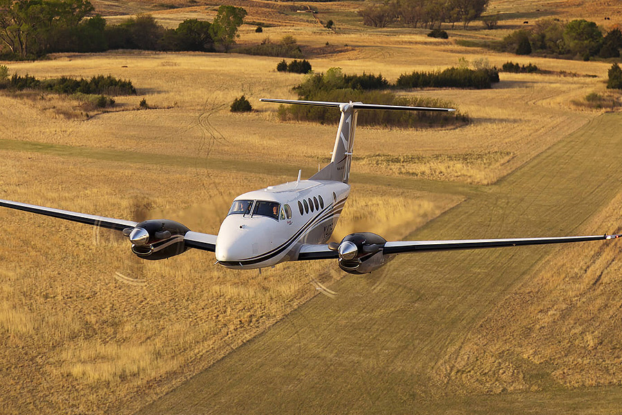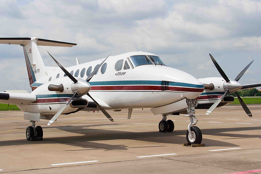 The Beechcraft King Air family is part of a line of twin-turboprop aircraft produced by Beechcraft. The King Air line of aircraft is comprised of a number of models that have been divided into two families; the Model 90 and 100 series are known as King Airs, while the Model 200 and 300 series were originally marketed as Super King Airs. Since production began in 1964, over 3,100 aircraft have been built. Production is currently still active, giving the Beechcraft King Air the longest continual production run of any civilian aircraft of its class. Several variants of the original design were created, including the Model A90, B90, and C90. The Model C90A, a variant of the C90, was introduced in 1984. The Model C90A featured the redesigned engine cowlings of the F90-1 and received an increase in takeoff weight in 1987, being certified to 10,100 lb. The aircraft was equipped with improved C90-1 landing gear retraction and electrical systems. It is powered by two Pratt & Whitney PT6A-21 turboprop engines with 550 shp each.