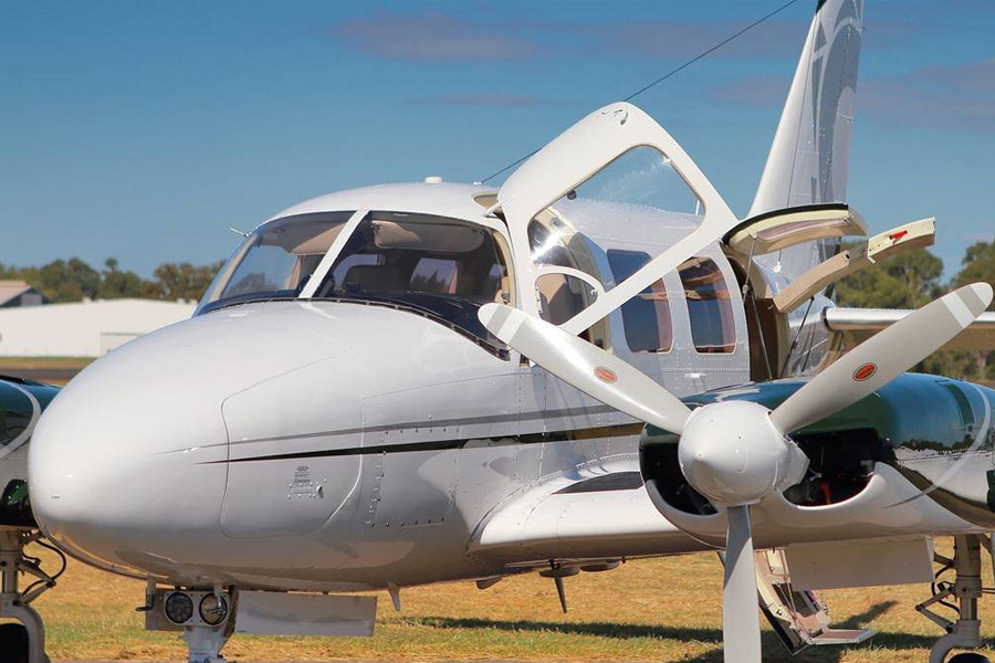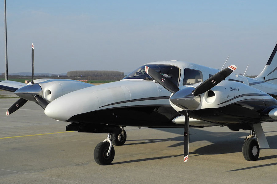 It is a light six-seater twin-engine, with turbocharged six-cylinder boxer engines that generates 400 horsepower. It is a fast multi-engine, equipped with counter-rotating motors